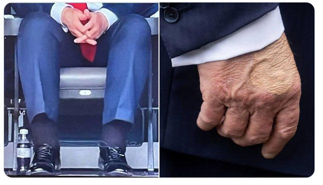 كما تطرّقت ليفيت إلى صور تم تداولها عبر الإنترنت تظهر كدمات طفيفة على ظهر يد الرئيس، وعزت تلك الكدمات إلى "تهيج طفيف في الأنسجة الرخوة ناتج عن المصافحة المتكررة". وأكدت في ختام حديثها "الرئيس لا يزال يتمتع بصحة ممتازة".